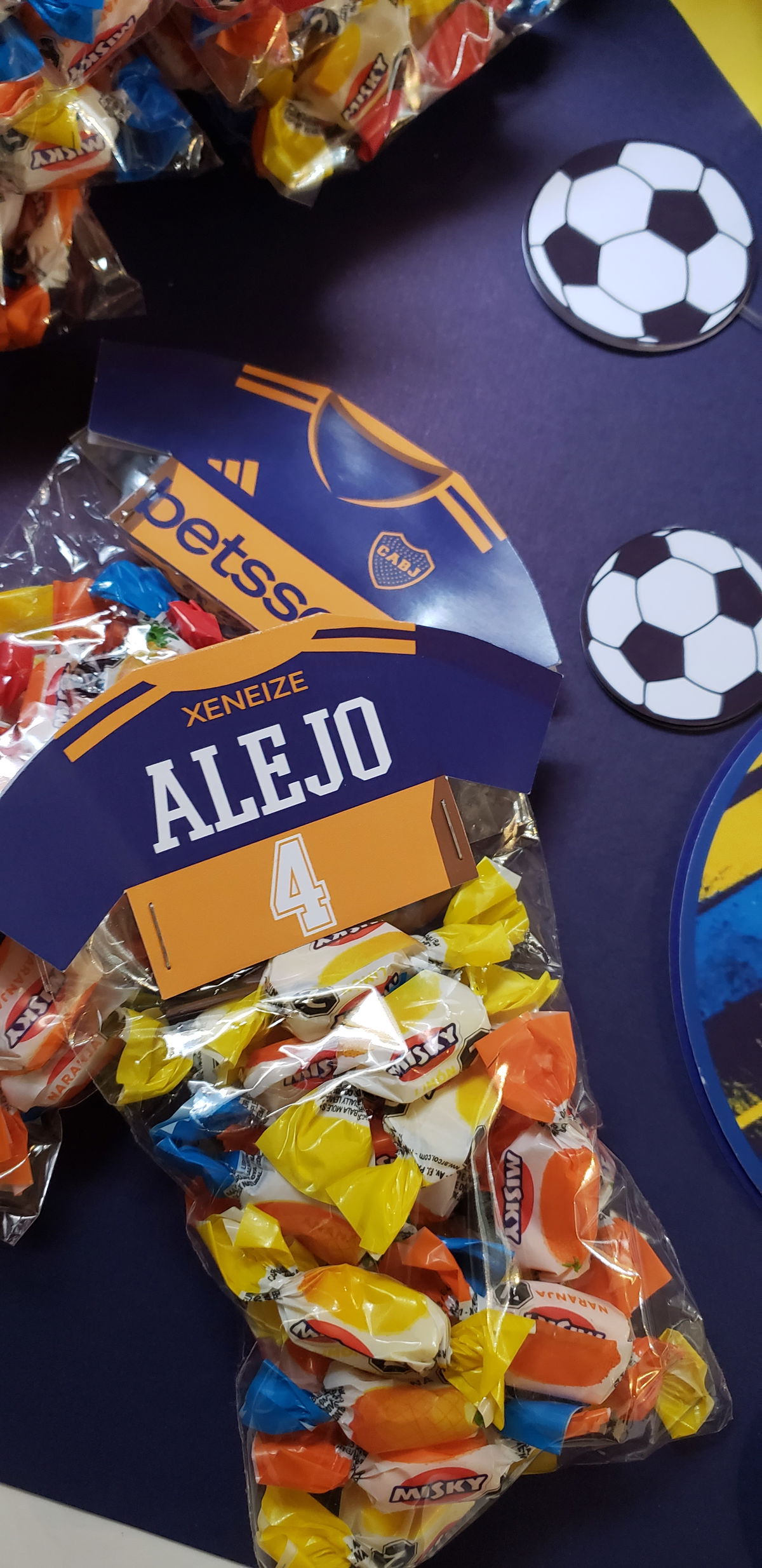 Este set incluye un alfajor simple y un delicioso turrón, una bolsita con caramelos con un cierra bolsa con la temática .